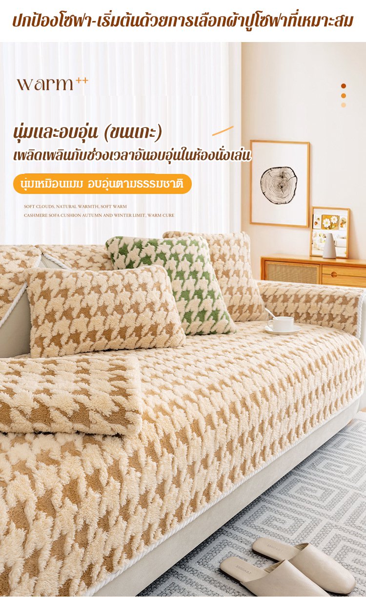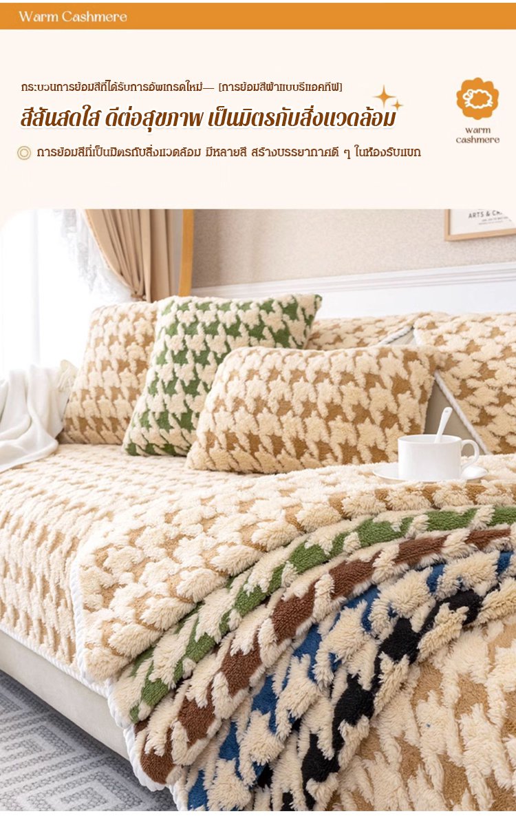 ผ้าปูโซฟาบุขนลายฟันสุนัขกันลื่น